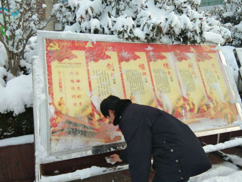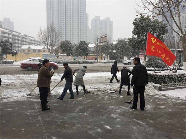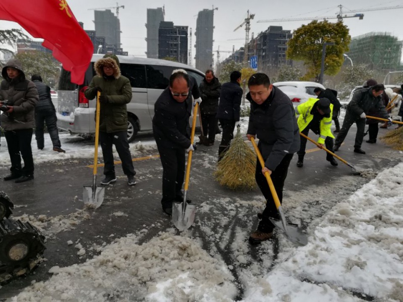 图为局机关工作人员清扫积雪