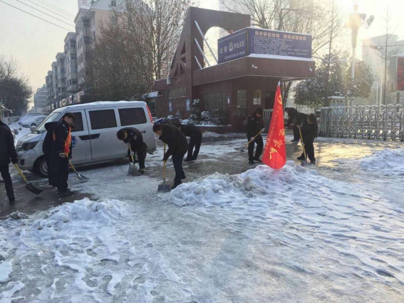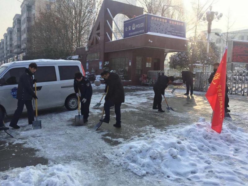 为保障学生出行安全,支队工作人员对九门前积雪进行清理