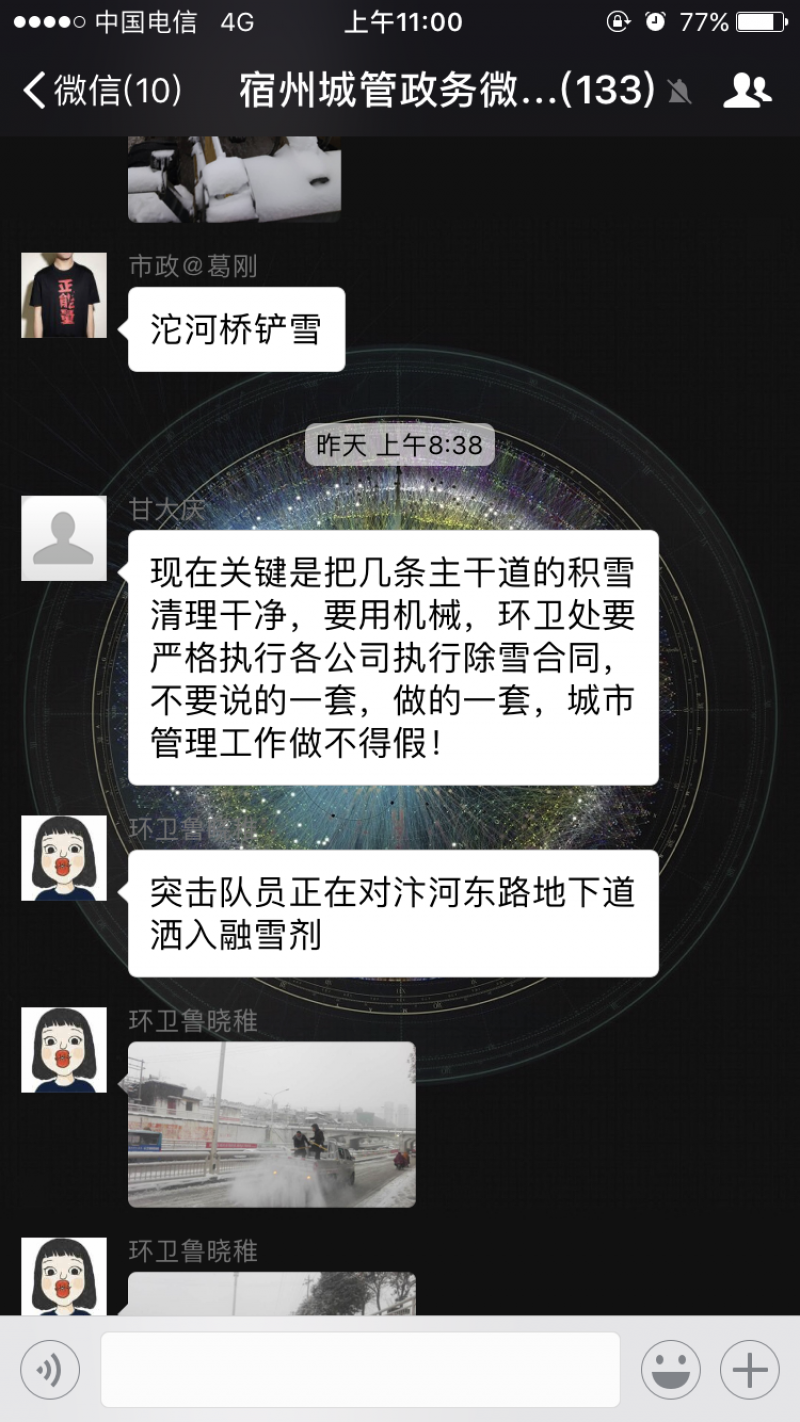 为确保上班族及学生的出行安全,3日凌晨开始,宿州市政管理处就出动大量人力、物力及车辆对宿城各所桥梁及地下道进行融雪除雪。