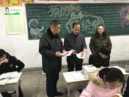 1月18日下午,市委宣传部常务副部长、市“扫黄打非”领导小组副组长解福来带领市“扫黄打非”办、市文广新(旅)局、市教体局等有关单位工作人员,深入城区部分学校,开展教辅材料专项检查活动。检查组一行通过听取汇报、座谈交流、查看购书一览表、订书合同和发票、及现场查看教辅材料、访谈在校学生等方式,详细了解学校对教辅材料的使用和管理情况。