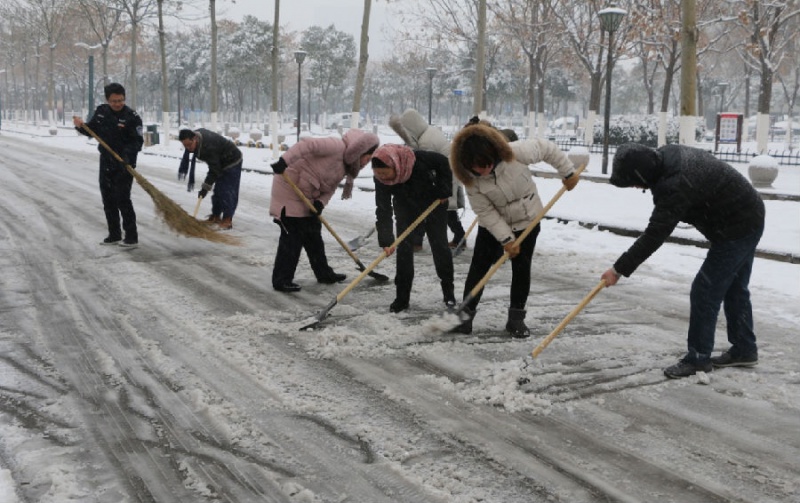 支队成立5支除雪分队,重点对人民路、银河一路、银河二路、磬云路、胜利路、淮海路、汴河路、西昌路等城区主要路段进行清扫疏通;各大队积极入户宣传,动员沿街单位和经营户落实“门前五包”责任制,清扫门前积雪,避免结冰现象。发动600余户沿街单位参与除雪行动,保障市民交通安全。
