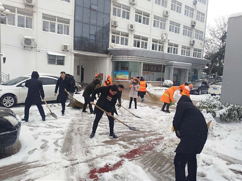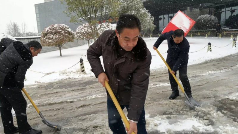 图为局机关工作人员清扫积雪