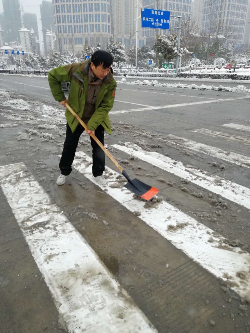 图为城管局副局长彭浩强上路铲雪